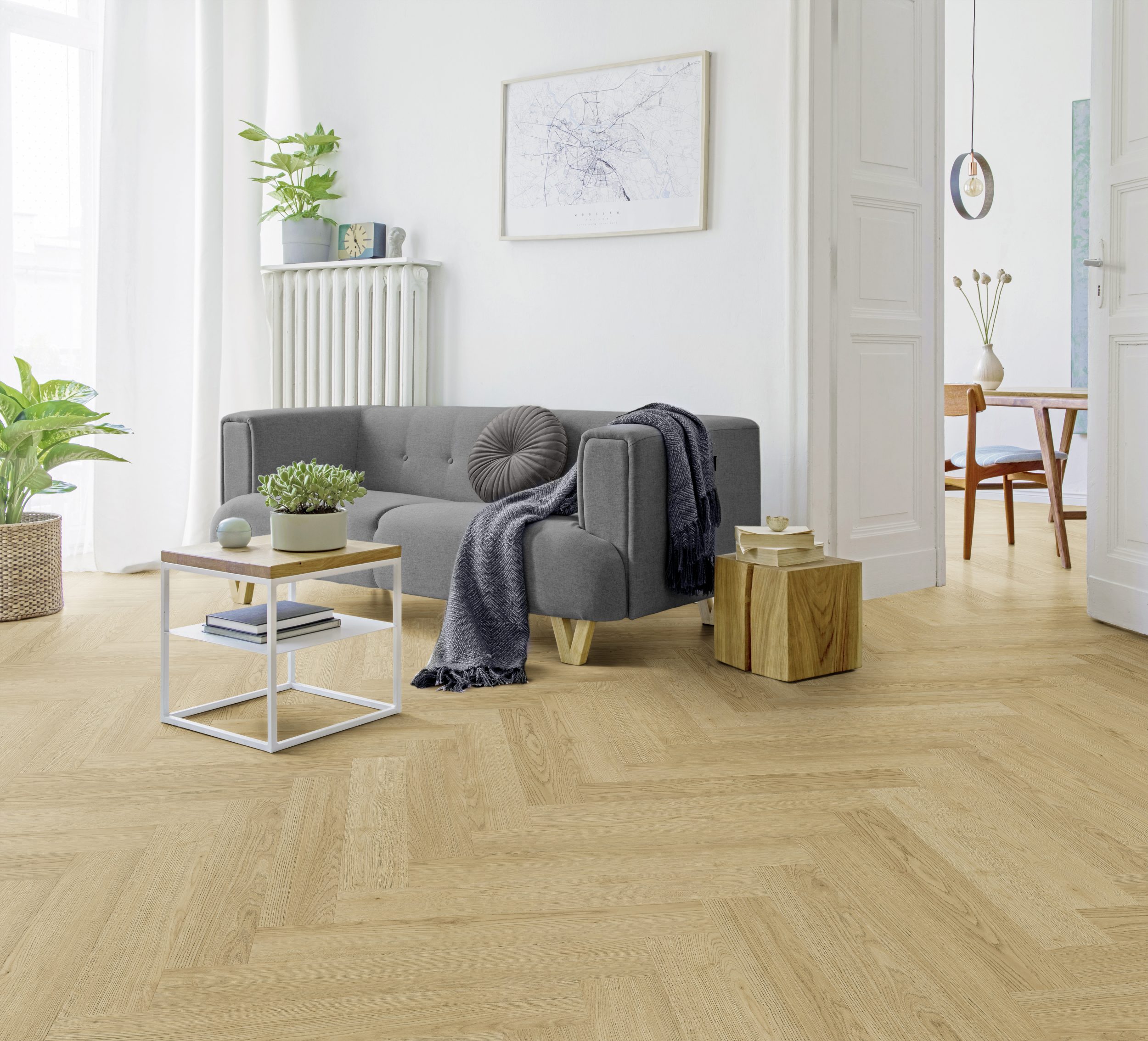 Boden: Project Floors Heringbone PW3261Sockelleiste: Hamburger Profil 18x115mm