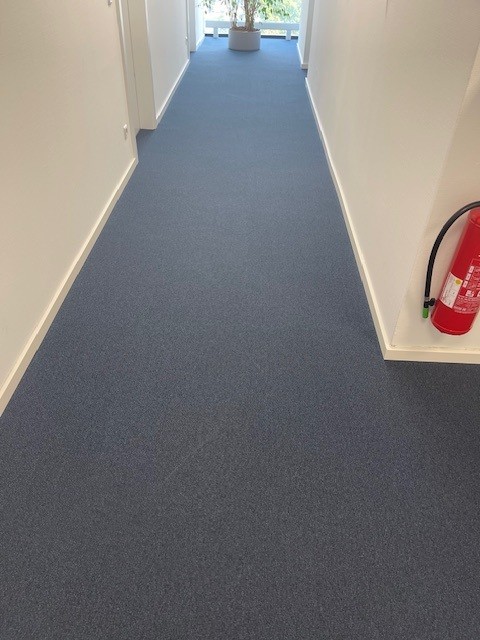 Bodenbelag: Bauchmie: Mapei / Teppichfliese: Jordan-Interface Output Loop Farbe: Quattro 028 – ca.435qm